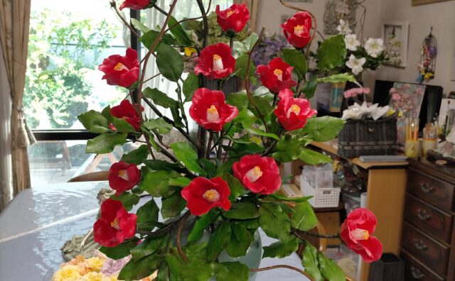 樹脂粘土で仕上げた椿の花ぴったりの器が見つかりましたバラードセピア